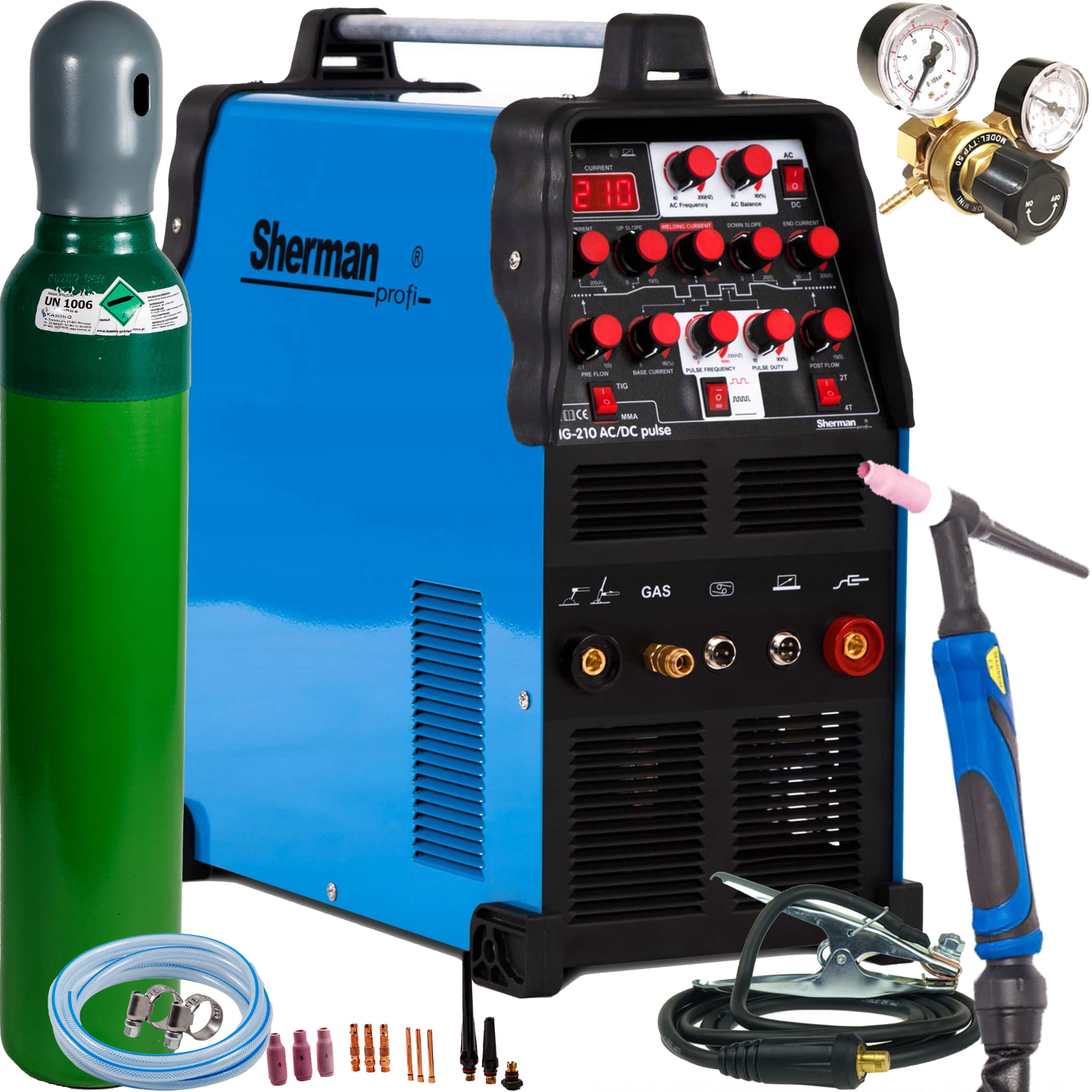 Spawarka inwertorowa Sherman TIG 210 AC/DC PULS ZESTAW 3