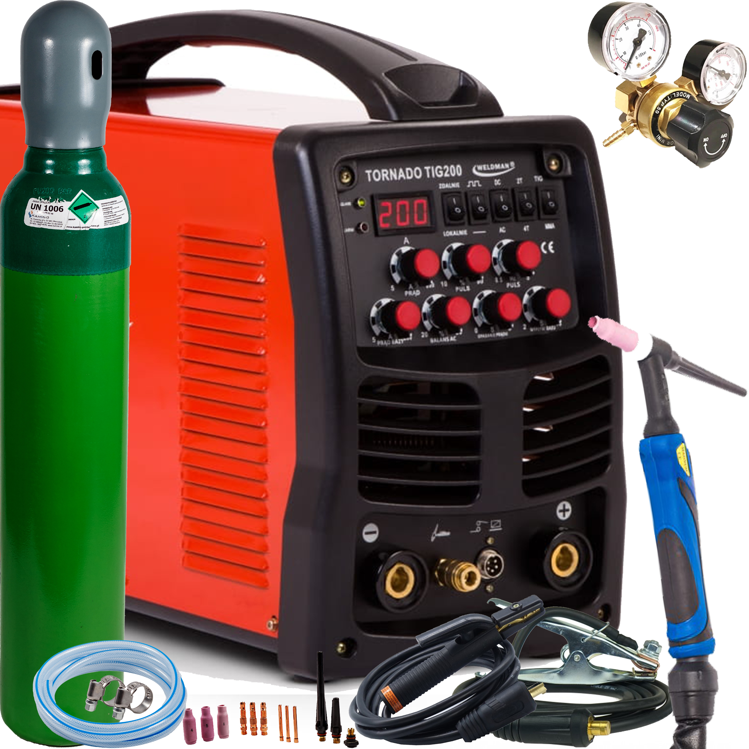 WELDMAN TORNADO TIG 200 AC/DC HF PULS Spawarka TIG MMA MOSFET IGBT ZESTAW 3